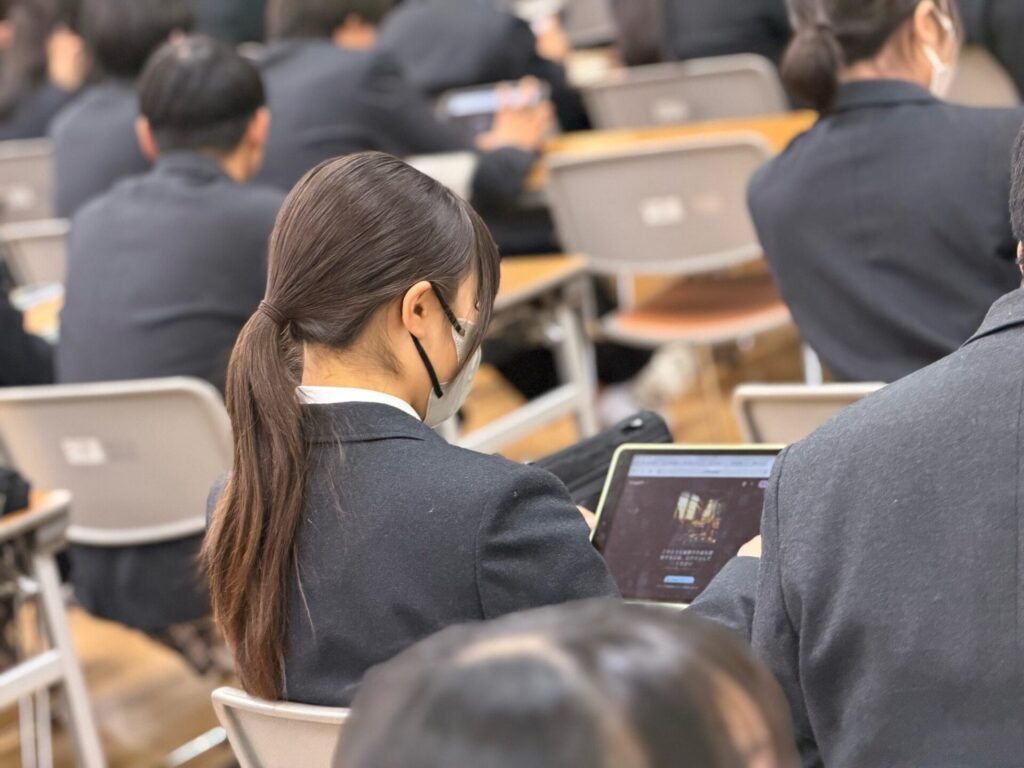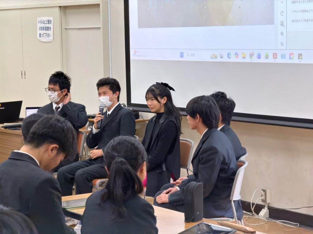 休憩時間にも次々と声をかけてくれ、生徒の皆さんの主体性や探究心の高さに、こちらが刺激をもらいました!