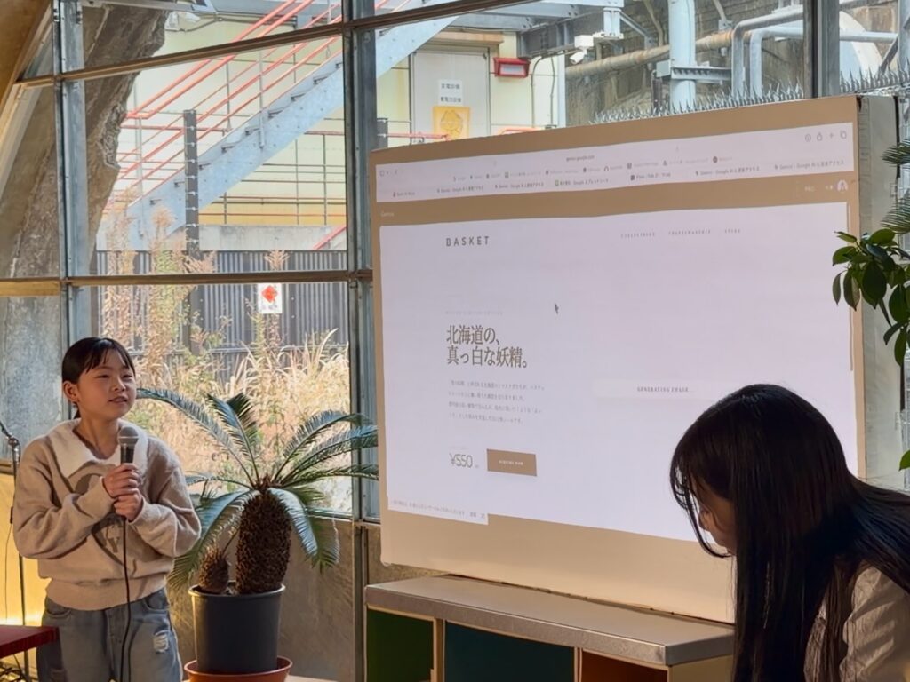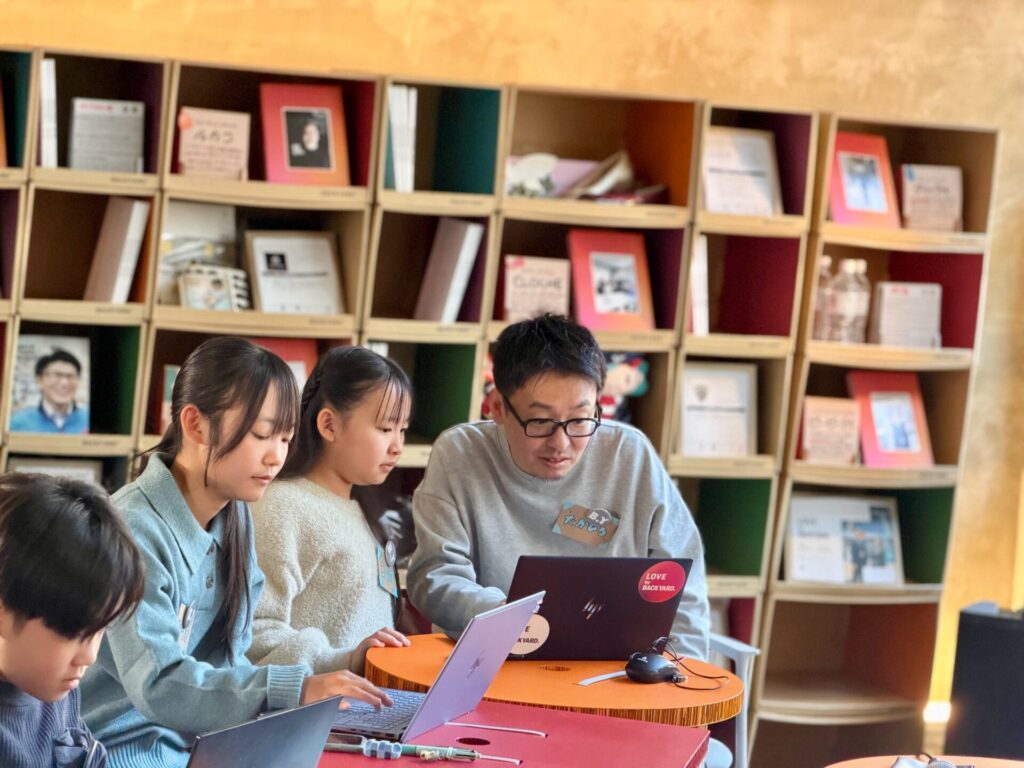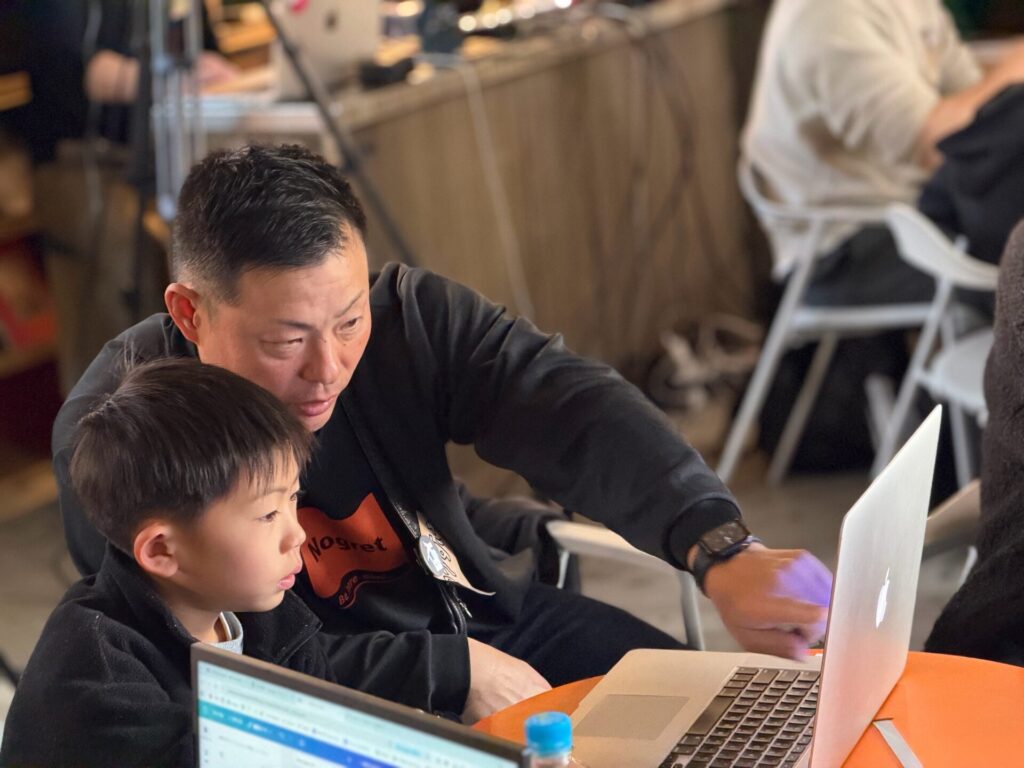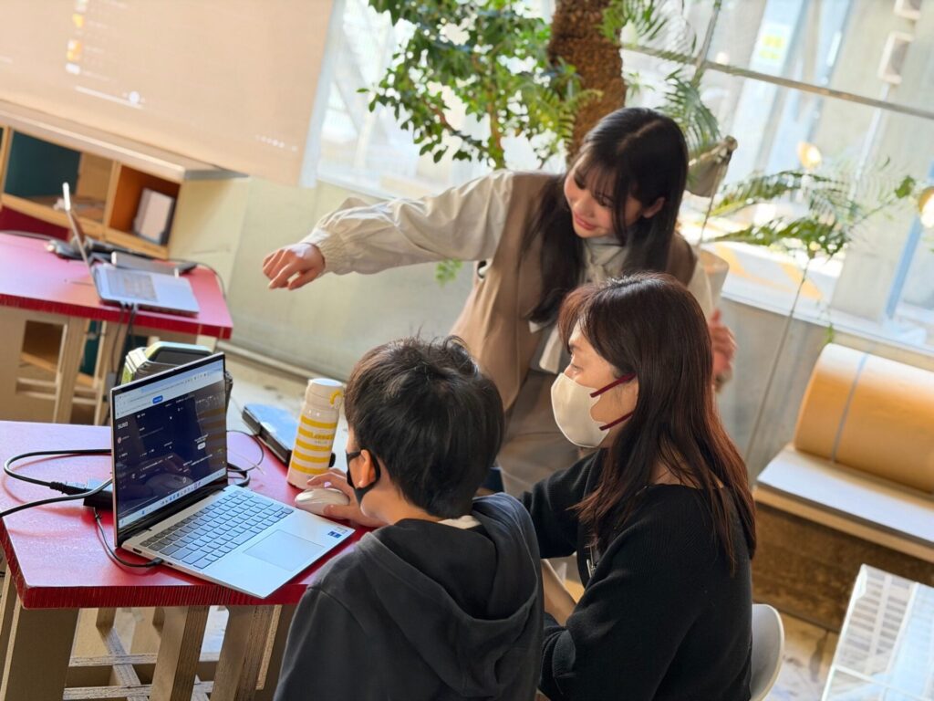 子ども同士でAIを学び合うコミュニティ「EGG JAM(エッグジャム)」のメンバーであり、今回の参加者でもある みつきちゃん が、サポート役として動いてくれました。自分自身も制作に取り組みながら、周りの子に声をかけ、操作を手伝い、考え方を一緒に整理する姿はとても頼もしく、大きな支えとなりました。
