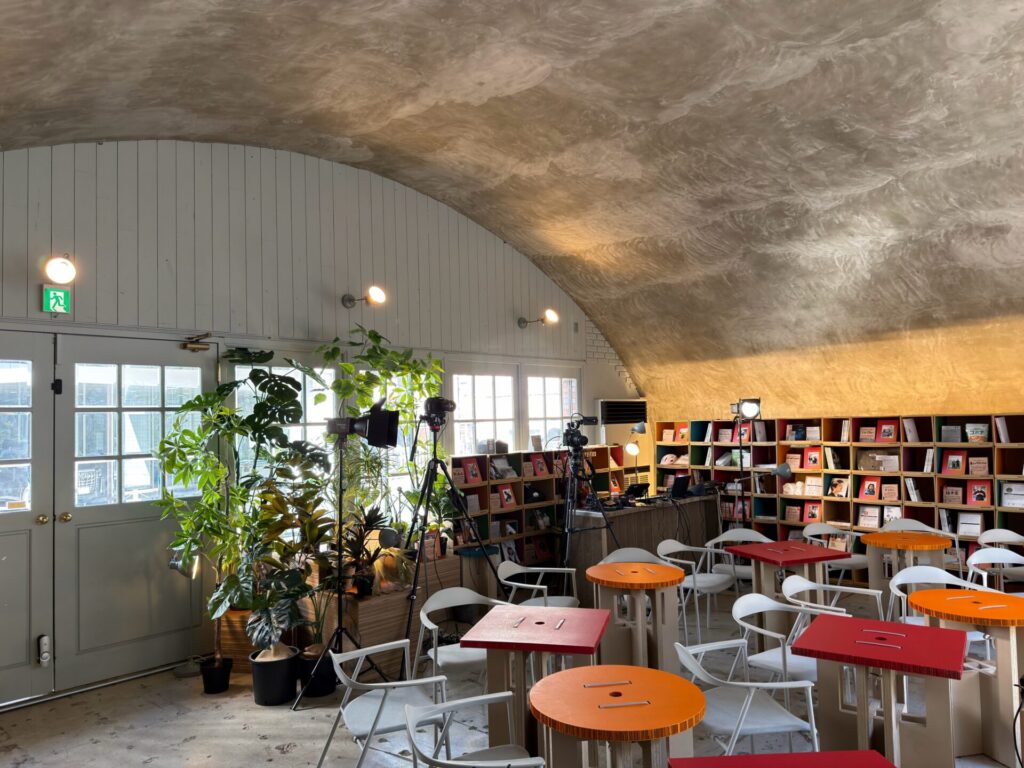 木の棚やグリーンが配置され、撮影機材も整った“創造”を前提に設計された場所。