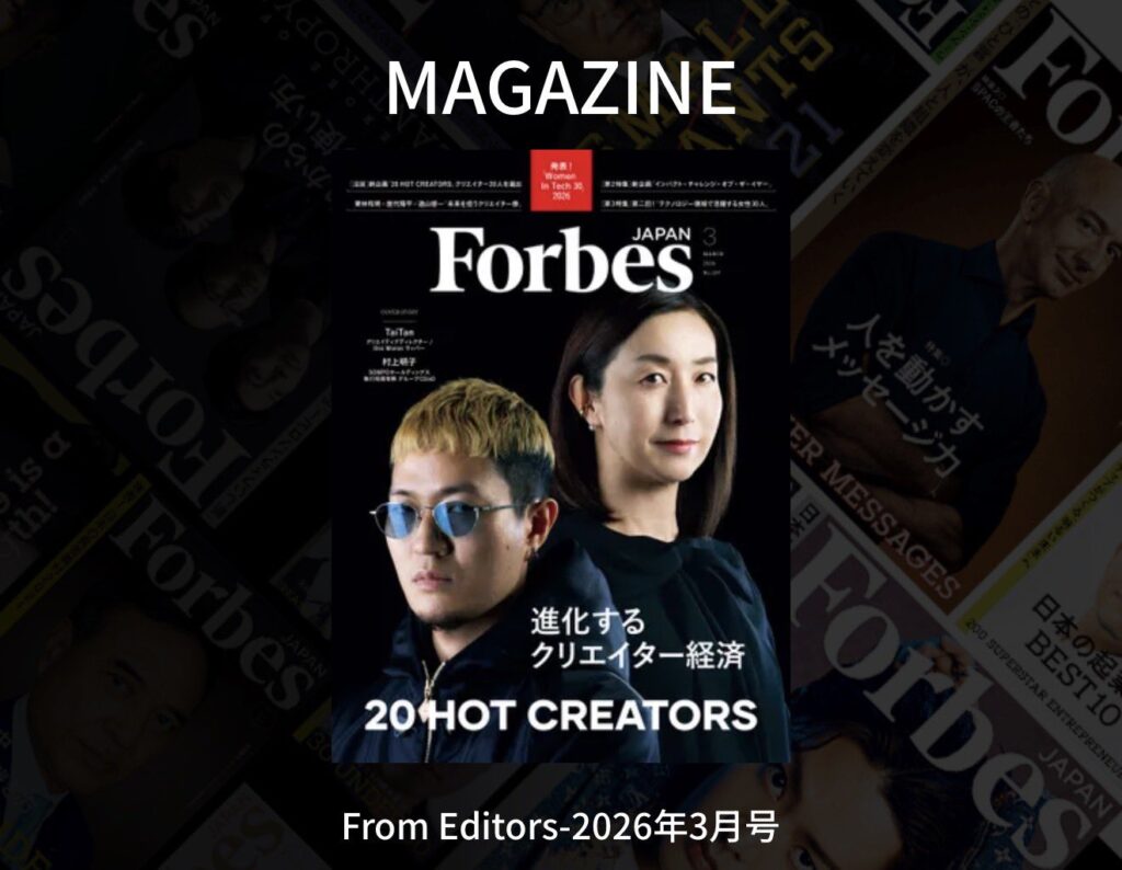 このたび、米『Forbes』日本版であるForbes JAPAN 3月号の特集「Women In Tech 30」に選出いただきました。