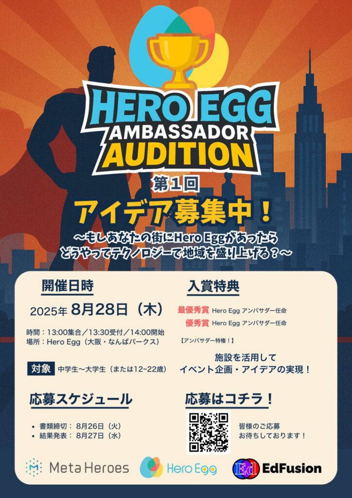 2025年8月28日(木)、大阪なんばパークスにて「第1回 Hero Egg 学生アンバサダーオーディション」を開催いたしましたので、ご報告させていただきます。